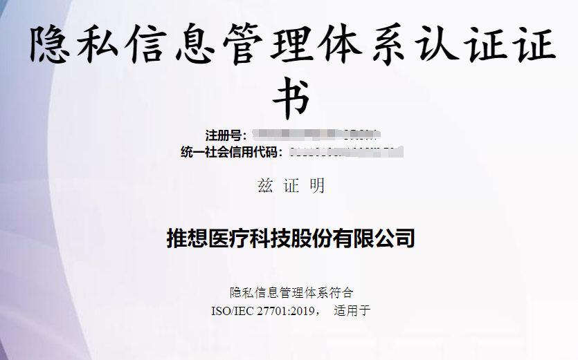 安全保護(hù)再上新臺階!推想醫(yī)療獲ISO27701隱私信息管理體系證書