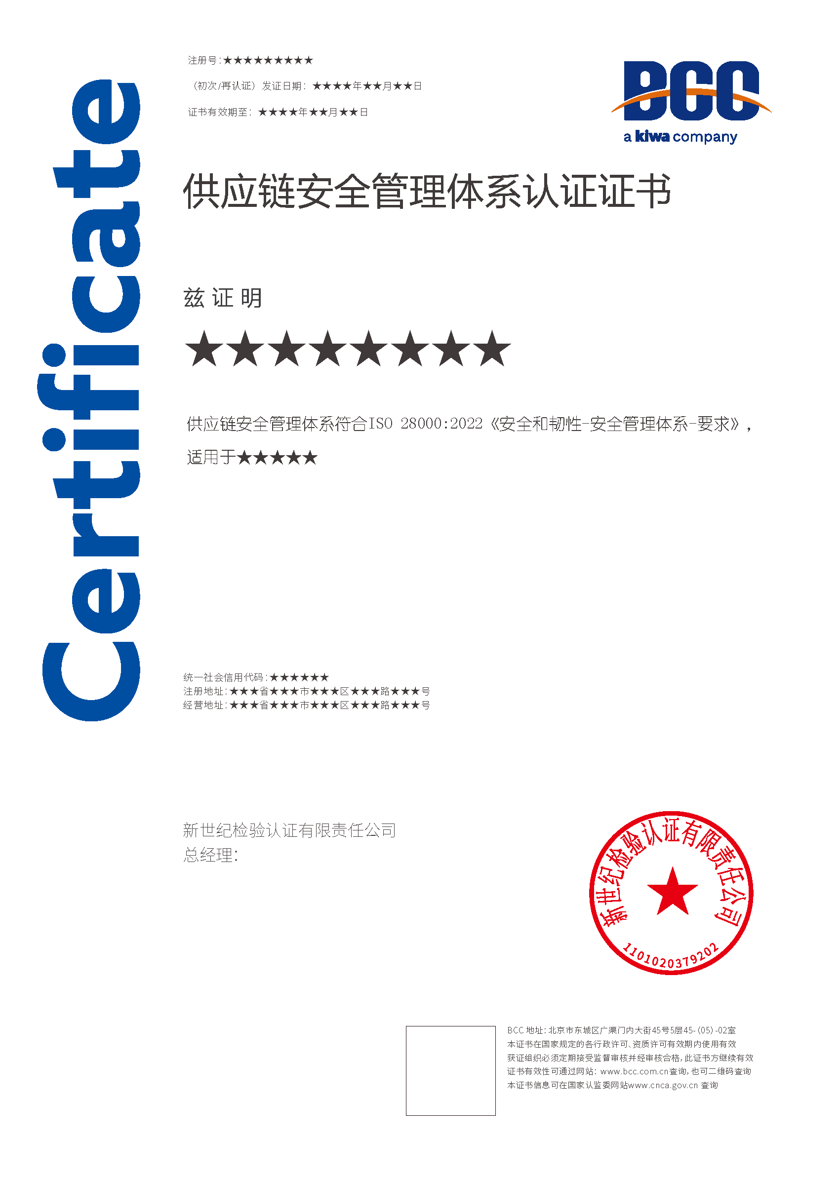 本頁(yè)涉及的認(rèn)證服務(wù)中均有對(duì)應(yīng)的《認(rèn)證實(shí)施規(guī)則》,BCC擁有其最終解釋權(quán)。任何組織及個(gè)人未經(jīng)BCC許可,不得以任何形式全部或部分使用(法律要求除外)認(rèn)證相關(guān)信息。如需獲取相關(guān)實(shí)施規(guī)則請(qǐng)用以下方式聯(lián)系獲?。弘娫挘?10-58579316 郵箱:fwjs@kiwa.cn