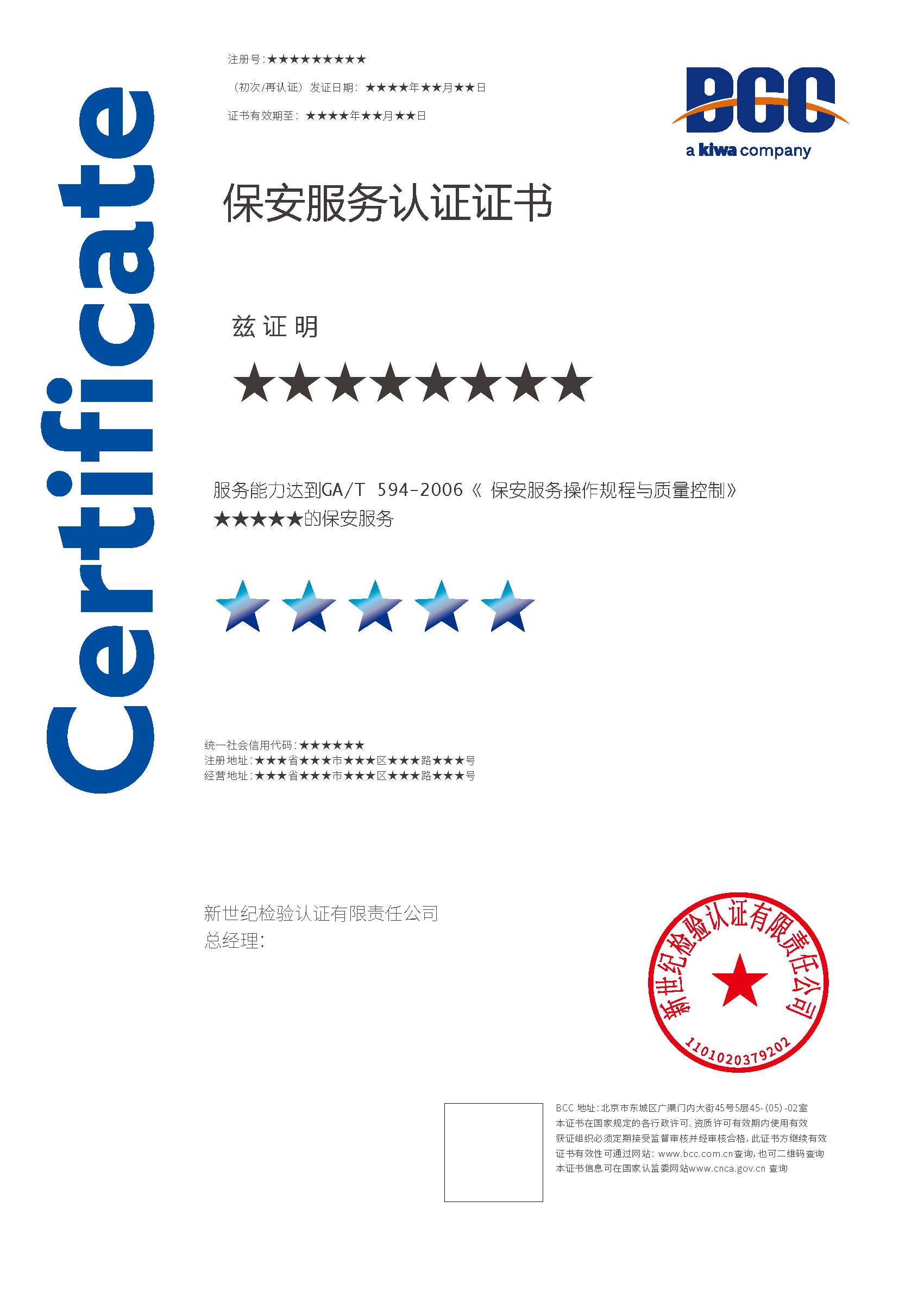 保安服務(wù)認(rèn)證證書的有效期為三年,BCC每年會對獲證組織進(jìn)行必要的監(jiān)督審查,證書到期前會進(jìn)行再認(rèn)證審查。