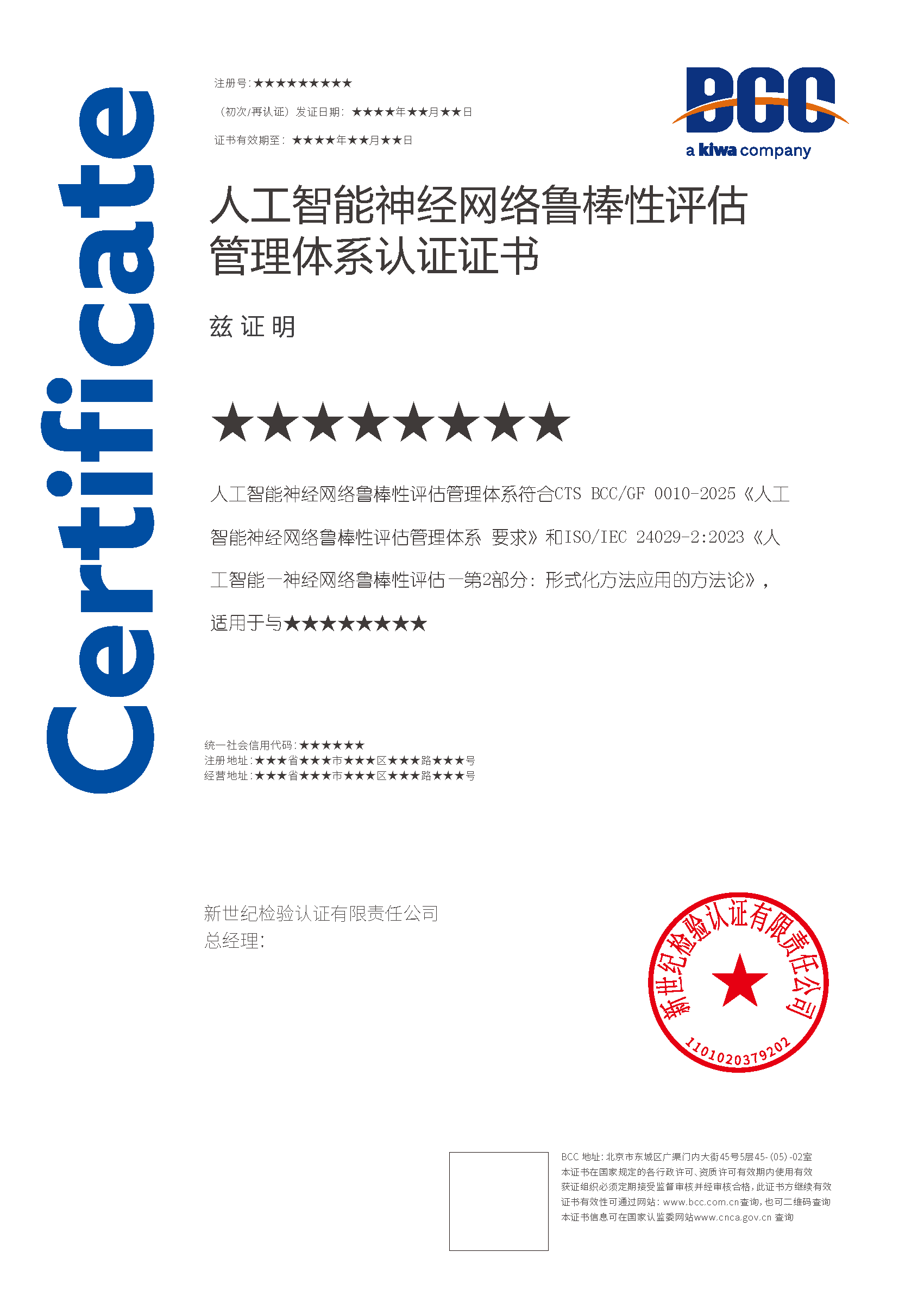 本頁涉及的認證服務中均有對應的《認證實施規(guī)則》,BCC擁有其最終解釋權(quán)。任何組織及個人未經(jīng)BCC許可,不得以任何形式全部或部分使用(法律要求除外)認證相關(guān)信息。如需獲取相關(guān)實施規(guī)則請用以下方式聯(lián)系獲取:電話:010-58579316 郵箱:fwjs@kiwa.cn