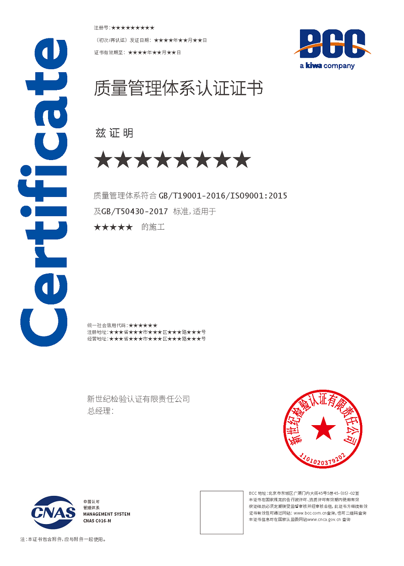 本頁(yè)涉及的認(rèn)證服務(wù)中均有對(duì)應(yīng)的《認(rèn)證實(shí)施規(guī)則》,BCC擁有其最終解釋權(quán)。任何組織及個(gè)人未經(jīng)BCC許可,不得以任何形式全部或部分使用(法律要求除外)認(rèn)證相關(guān)信息。如需獲取相關(guān)實(shí)施規(guī)則請(qǐng)用以下方式聯(lián)系獲取:電話:010-58579316 郵箱:fwjs@kiwa.cn