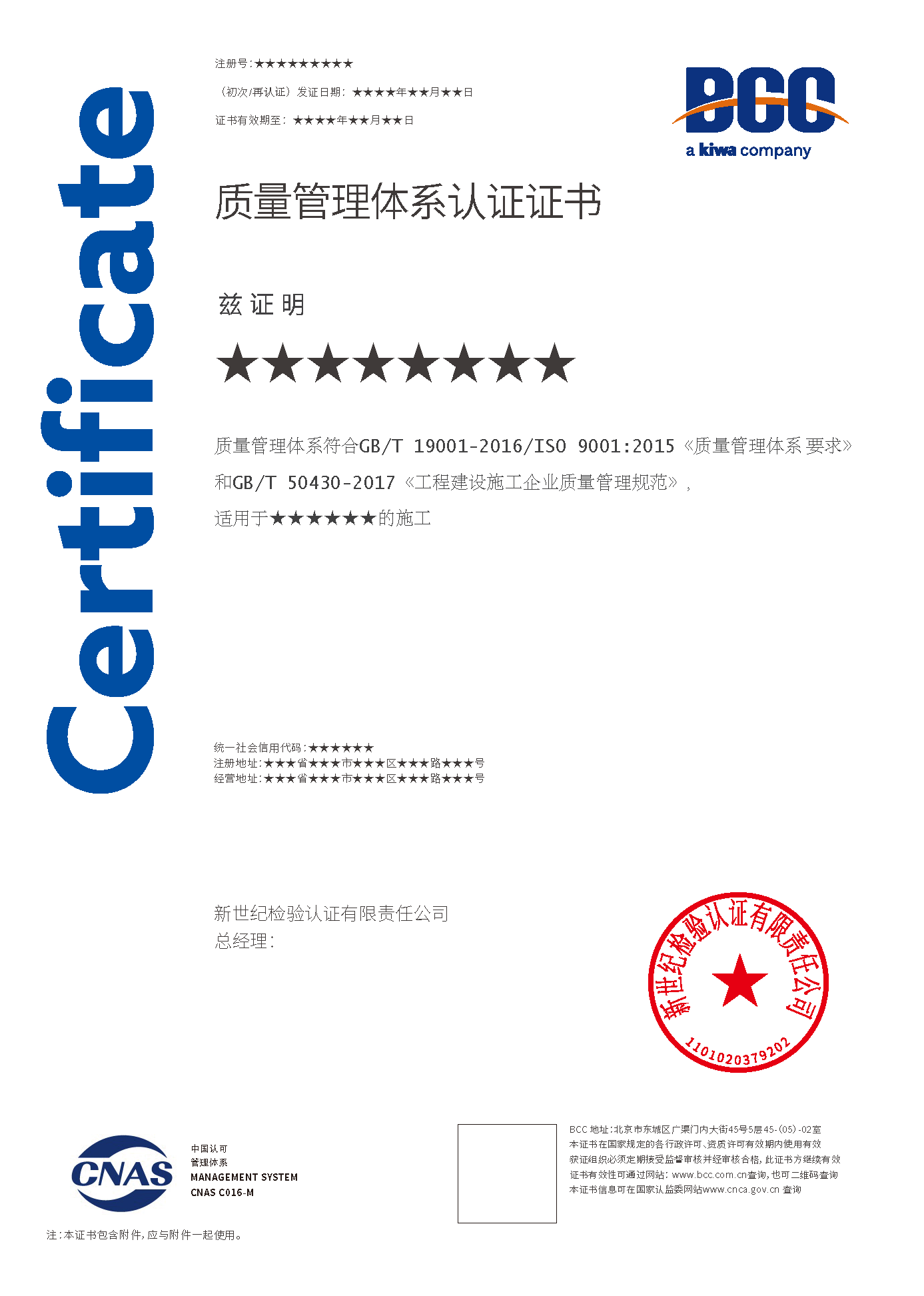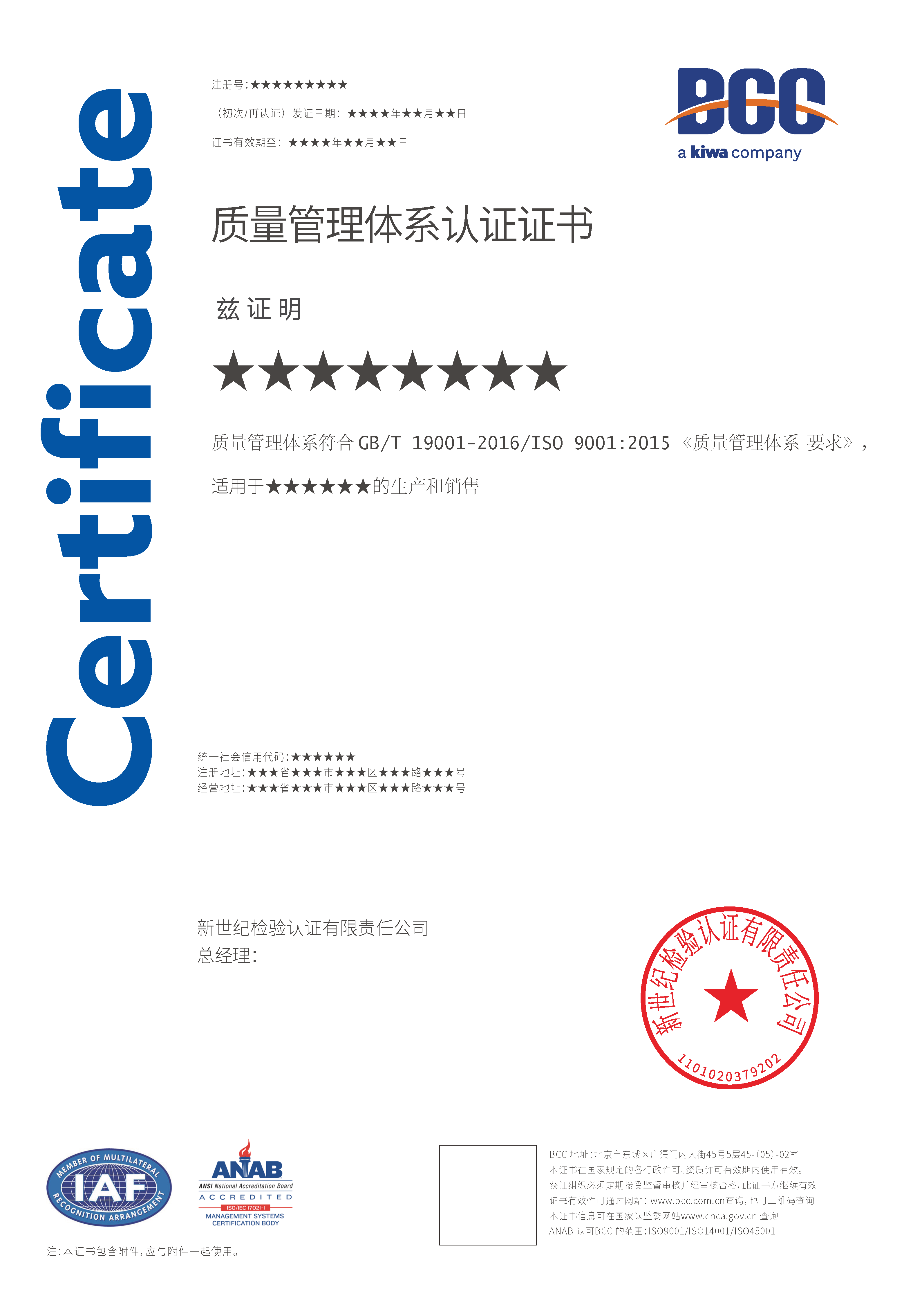 本頁涉及的認(rèn)證服務(wù)中均有對(duì)應(yīng)的《認(rèn)證實(shí)施規(guī)則》,BCC擁有其最終解釋權(quán)。任何組織及個(gè)人未經(jīng)BCC許可,不得以任何形式全部或部分使用(法律要求除外)認(rèn)證相關(guān)信息。如需獲取相關(guān)實(shí)施規(guī)則請用以下方式聯(lián)系獲?。弘娫挘?10-58579316 郵箱:fwjs@kiwa.cn