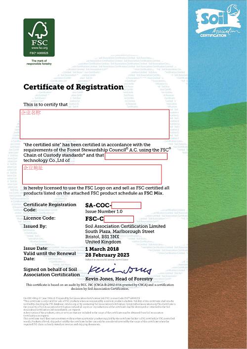 Kiwa BCC已經(jīng)獲得英國(guó)土壤協(xié)會(huì)SA授權(quán),可在中國(guó)開展FSC®產(chǎn)銷監(jiān)管鏈認(rèn)證(FSC® N001893)和PEFC產(chǎn)銷監(jiān)管鏈認(rèn)證。同時(shí),可為組織提供CFCC產(chǎn)銷監(jiān)管鏈認(rèn)證服務(wù)。