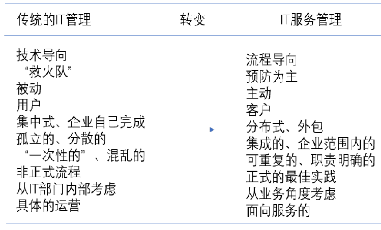 根本出發(fā)點在于通過 IT 服務(wù)有力的支持企業(yè)的發(fā)展以及業(yè)務(wù)部門業(yè)務(wù)的開展,促進(jìn)企業(yè)競爭力的有效提升。在 IT 管理當(dāng)中,IT 服務(wù)管理屬于不可或缺的構(gòu)成部分。但是IT 服務(wù)管理有別于傳統(tǒng)的 IT 管理,其存在的意義在于將基于服務(wù)之上的 IT 管理提供給購買 IT 服務(wù)的企業(yè)或內(nèi)部部門。